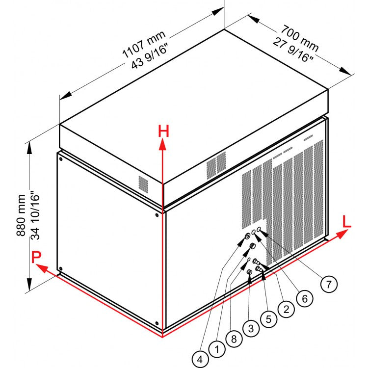Dimensioni (LxPxH) 1107 x 700 x 880 mm